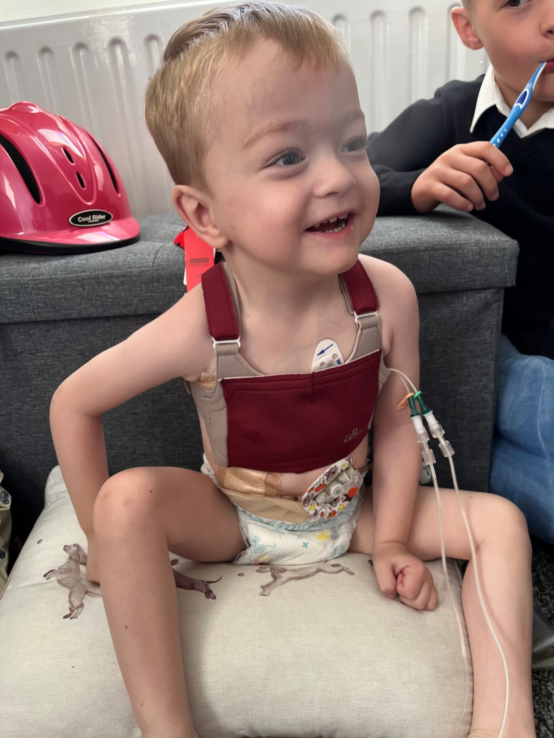 Now aged three, Noah lives with short gut syndrome and he is fitted with an ileostomy, and reliant on feeding tubes for nutrition. In spite of his illness, he remains active and attends nursery. Lora said: “He is unsteady on his feet and walks a bit like a drunk person! Being a toddler means he is always on the go and as his feeding tubes are made of thin plastic, they are constantly being snagged”.