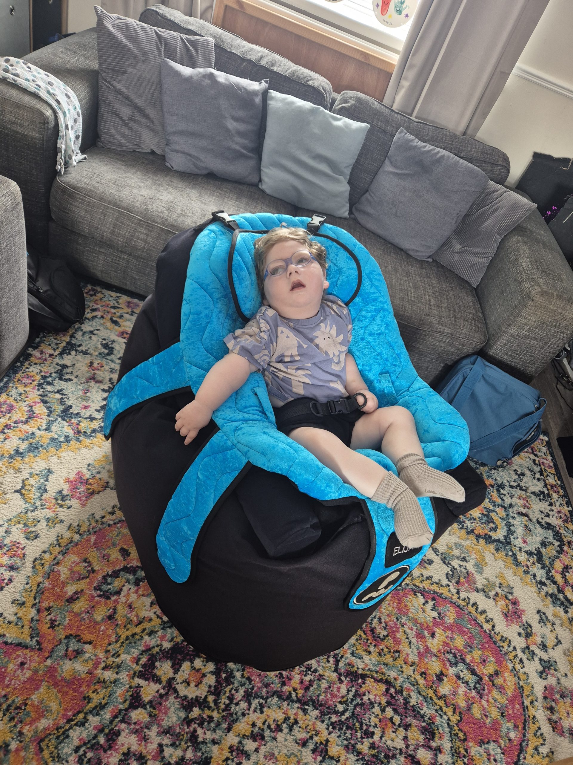 Having used P-Pod seats at his local children’s hospice, Kylie and Ian knew the benefits of the supportive beanbag for Elijah. They spoke with his Occupational Therapist about obtaining one for him to use at home and the correct model was agreed but they quickly found the item was unobtainable through statutory sources. As it also came with a high price tag, they began looking for charitable support with the help of Elijah’s Occupational Therapist and when they came to React, they were immediately impressed with our service.