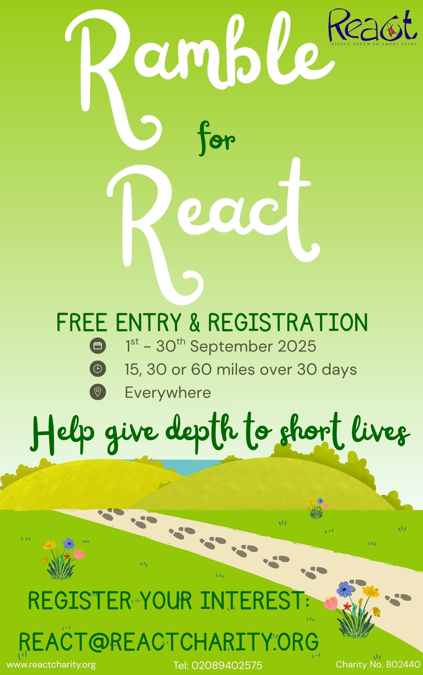- Don’t forget to use the hashtag #RambleforReact when posting to your socials and tag us on X @ReactCharity